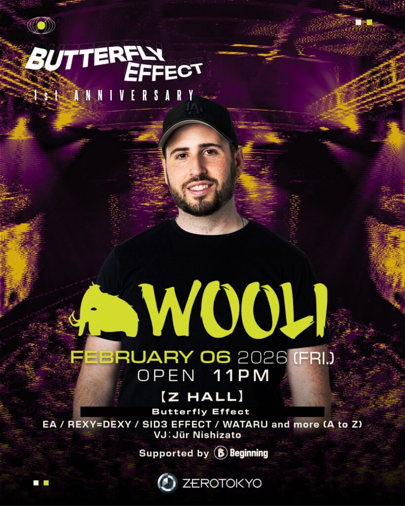 ベースミュージックパーティー『Butterfly Effect』の1周年パーティーに新たなキングと目されるWOOLIの初来日が決定!!