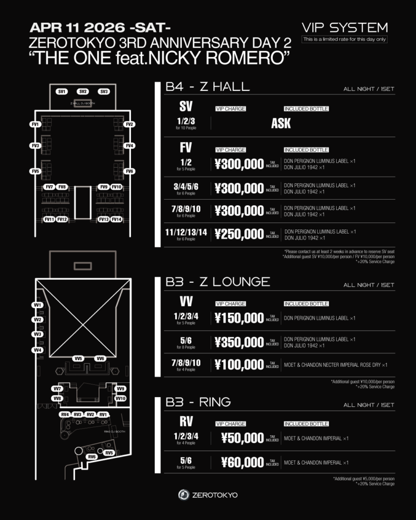 2026.4.11(土) ZEROTOKYO 3RD ANNIVERSARY DAY 2 “THE ONE feat.NICKY ROMERO” @ZEROTOKYO